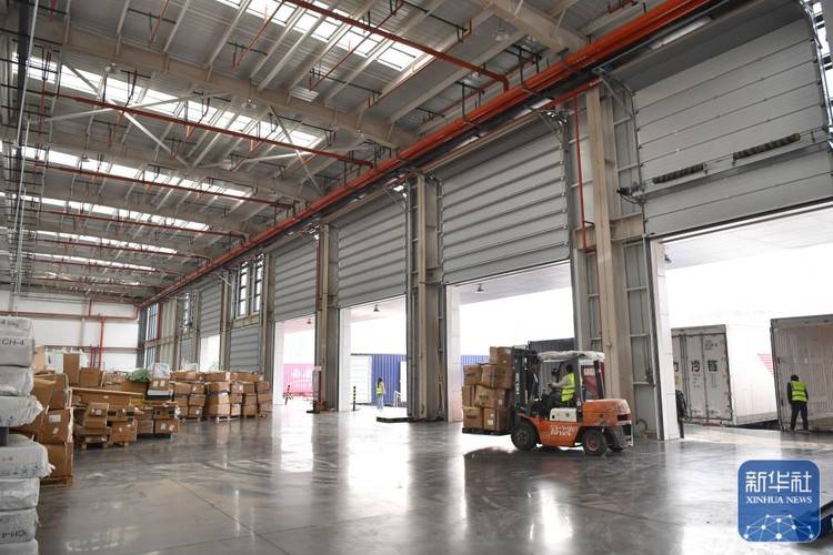 ↑11月14日,在西安国际港站哈萨克斯坦西安码头,工人在仓库中装卸货物。新华社记者 邵瑞 摄