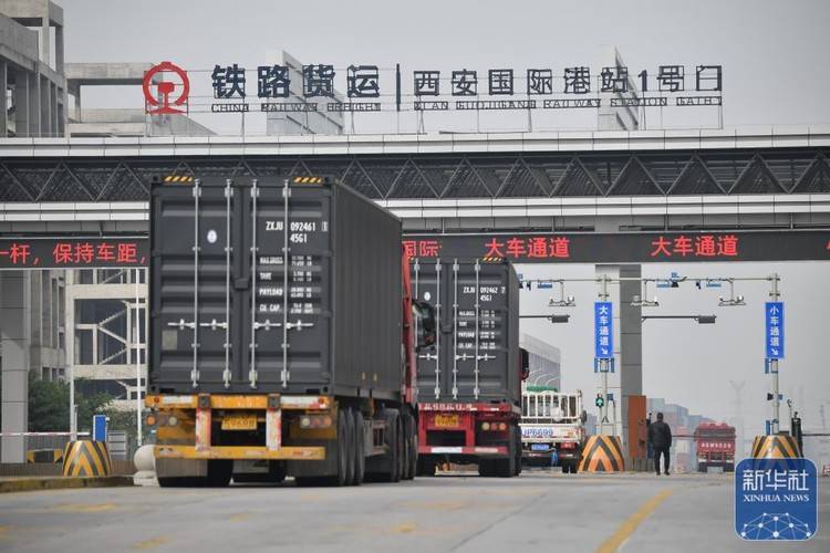 ↑11月14日,货车驶入西安国际港站。新华社记者 邵瑞 摄