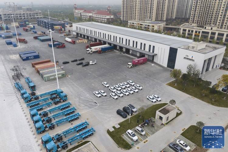 ↑西安国际港站运行中的哈萨克斯坦西安码头(11月14日摄,无人机照片)。新华社记者 邵瑞 摄