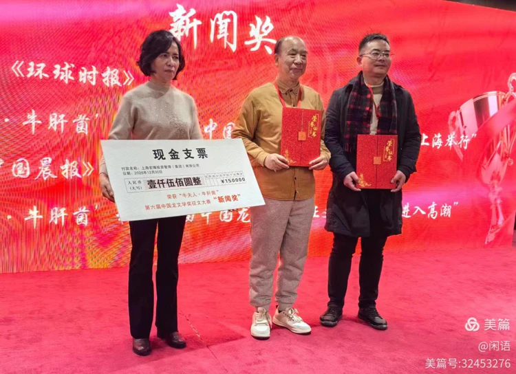 【中国晨报上海讯:王彬】2025年12月30日上午,“牛夫人•牛肝菌”杯第六届中国龙文学奖发奖庆典仪式在上海青松城老干部活动中心举行,总出席人数120人左右。上海宏博集团创始人石建极先生携企业董事会团队,与文学顾问朱超群成立的征文组委会班子,为全国30个省市自治区上千名参与者近70名获奖代表前来参会。会上公布一二三等奖和优秀奖,总数有115名作者获奖的名单,企业集团董事会成员与组委会成员在发奖时与获奖者合影留念。
