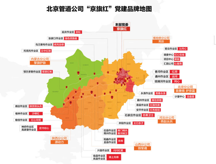 公司党委构建起三级党建品牌矩阵,以“京旗红”为主品牌,推动各分公司、作业区打造特色子品牌,形成一主多元、主线清晰的红色生态,让党建品牌扎根基层一线,让红色引领覆盖管网每一个角落,凝聚起全员奋进的强大合力。