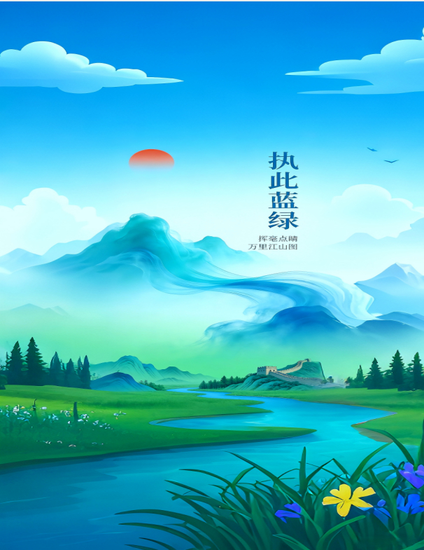 蓝绿交融情绘万里江山图