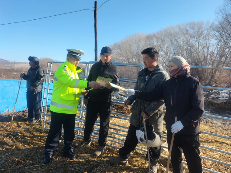 同时,阿勒泰市公安局坚持护航与宣传同步、服务与教育并重,把交通安全课堂搬到转场一线。民警结合牧区出行特点,围绕牲畜上路、转场夜行、车辆避让、应急避险等内容,用哈萨克语和汉语双语向牧民宣讲交通安全法律法规,通过典型事故案例以案说法,提醒牧民自觉遵守交通规则,增强安全防范意识。民警还向牧民发放宣传资料、粘贴反光警示贴,现场演示车辆与牧群安全间距、应急避险方法等实操内容,把安全知识送到牧民手中、记在群众心里,切实提升牧区群众交通安全自我防护能力。在宣传过程中,民警还主动了解牧民转场需求,收集道路安全建议,建立警民沟通台账,及时回应群众诉求。