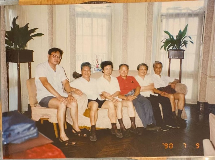 九0年姚润康老师和李秉芳,王妙发,台湾油画家,(专为蒋介石画肖像)戴敦邦,廖炯模和平飯店吃飯畄影